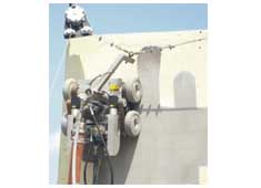 對(duì)于垂直面上的大型清洗工程,例如直徑為100英尺(30m)的大型儲(chǔ)罐和船體,越來(lái)越多的清洗服務(wù)公司選用NLB SRT-10-W爬壁機(jī)器人來(lái)完成工作。工作人員安全地站在地面,通過(guò)無(wú)線控制器控制爬行器在罐表面向上、向下和向兩邊運(yùn)動(dòng),爬壁機(jī)器人運(yùn)動(dòng)的同時(shí)SPIN JET?旋轉(zhuǎn)噴嘴完成所有的清洗任務(wù)。