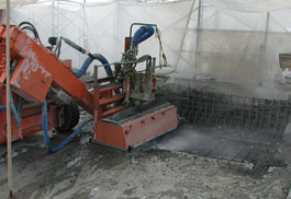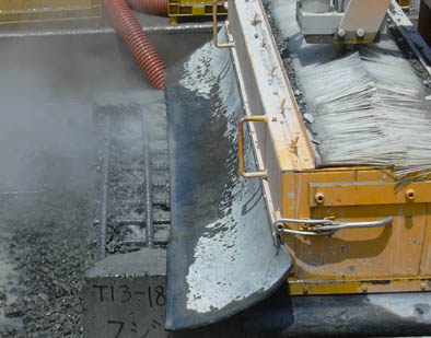 我公司采用高壓水破碎混凝土工藝參與上海S20老滬閔路立交大修及兩側(cè)橋頭接坡大修工程。這是上海市首次在立交橋梁上采用此次工藝進(jìn)行鋪裝層翻新工程,對(duì)城市道路快速化翻新和保護(hù)性拆除具有非常重要的典型示范意義。此次工程第一階段為兩側(cè)橋頭坡大修,全長760米,白天將占用一根車道,夜間(22:00-次日5:00)占用兩根,橋面瀝青采用銑刨機(jī)清除后,鋪裝層由我公司采用美國NLB高壓水射流設(shè)備和美國NLB混凝土破碎機(jī)器人施工。S20老滬閔路橋面鋪裝層厚度7CM,內(nèi)置兩層鋼筋,如果采用傳統(tǒng)的風(fēng)鎬、鎬頭機(jī)等機(jī)械破碎方法,速度慢,而且對(duì)鋼筋和梁板都會(huì)造成損傷,存在很多不安全風(fēng)險(xiǎn)的影響。我公司的水力清拆工藝是傳統(tǒng)機(jī)械破碎混凝土速度的15倍,不僅對(duì)鋼筋結(jié)構(gòu)沒有任何影響,破碎深度可以精確控制,而且對(duì)梁板表面有一層輕微鑿毛效果,更有利于新的鋪裝層和梁板的結(jié)合。
