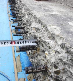 傳統(tǒng)橋梁拓寬植筋施工時(shí),采用空壓機(jī)破除瀝青混凝土,然后按照翼緣預(yù)先劃好的線,采用金剛石切割機(jī)進(jìn)行切割。但是這種方法導(dǎo)致混凝土被清除的同時(shí),鋼筋結(jié)構(gòu)由于空壓機(jī)的震動(dòng)產(chǎn)生了細(xì)小的裂紋,使得路面鋼筋結(jié)構(gòu)存在潛在的不安全因素。